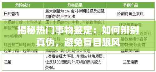 标题:揭秘热门事物鉴定:如何辨别真伪,避免盲目跟风