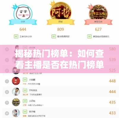 如果主播的名字出现在榜单的前列,那么可以肯定他们是在热门榜单中的。一般来说,榜单前10名或前20名都可以视为热门榜单。