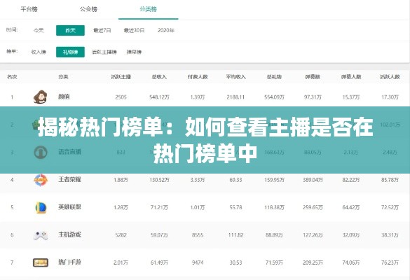 标题:揭秘热门榜单:如何查看主播是否在热门榜单中