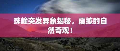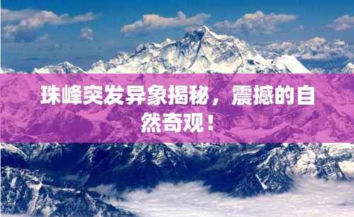 珠峰突发异象是一场神秘的自然奇观,引发了人们的广泛关注和好奇,这一现象可能是自然力量的展现,具有重要的科研价值,也为旅游业带来了新的发展机遇,我们也需要警惕其中潜在的风险,关注自身安全,希望科学家们能够深入研究这一现象,揭开其背后的真相,为人类认识自然、保护地球提供更多依据。