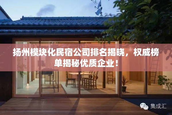 随着旅游业的蓬勃发展,民宿行业逐渐崭露头角,扬州,这座历史文化名城,以其独特的魅力和丰富的旅游资源吸引着众多游客,模块化民宿作为近年来新兴的一种住宿形式,因其高效、便捷、可复制性强等特点,在扬州市场也获得了广泛关注,本文将探讨扬州模块化民宿公司的排名,以期为消费者提供更多参考。