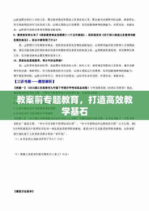 在教育教学过程中,教案前专题教育是一个至关重要的环节,它对于提升教学质量、提高学生兴趣、增强教学效果具有不可替代的作用,本文将从教案前专题教育的概念、意义、实施策略等方面进行探讨,以期为提高教育教学水平提供参考。