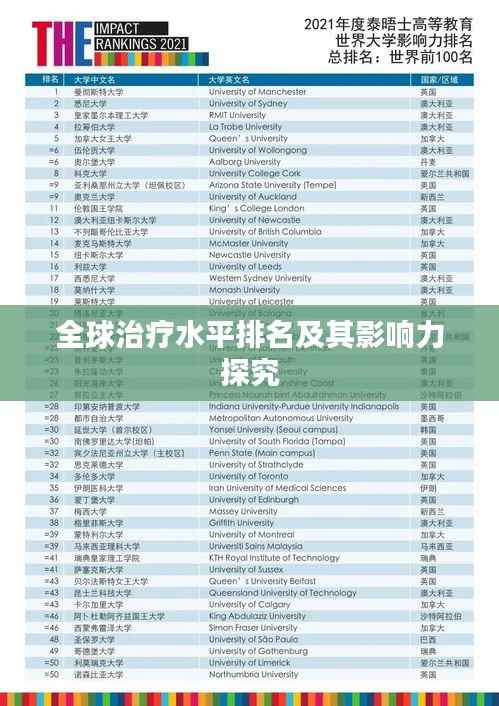 随着全球化的步伐不断加快,医疗领域的国际交流与合作日益频繁,世界各国的治疗水平逐渐受到广泛关注,本文将探讨世界治疗水平的排名及其背后的影响因素,旨在为读者提供全球医疗领域的宏观视角。