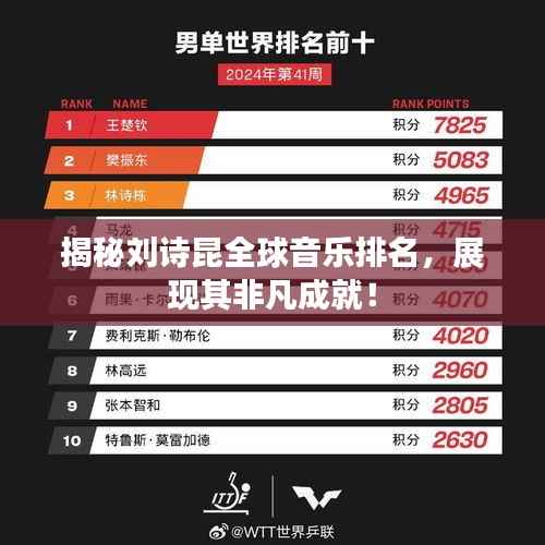 刘诗昆,一位才华横溢的音乐家,以其独特的音乐风格和卓越的演奏技巧赢得了世界各地观众的喜爱,随着其在音乐领域的不断发展和影响力的扩大,越来越多的人开始关注他的世界排名,本文将围绕刘诗昆的世界排名展开探究。