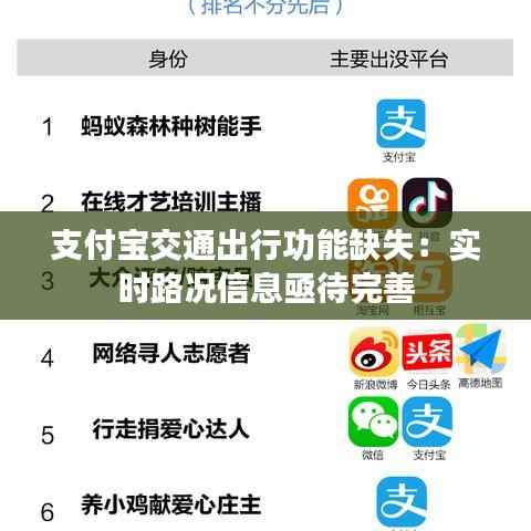 标题:支付宝交通出行功能缺失:实时路况信息亟待完善