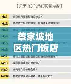 蔡家坡地区作为美食的聚集地,拥有众多风味各异的饭店,本文将为您介绍该地区口碑极佳的前十名好饭店,带您领略蔡家坡的美食魅力。