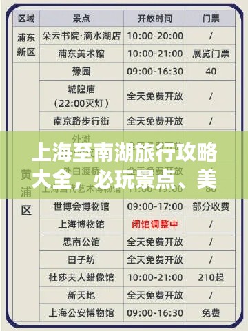 就是上海至南湖的旅游攻略,包括交通方式、行程安排、住宿推荐、美食推荐和注意事项等方面的内容,希望您在遵循攻略的同时,也能根据自己的兴趣和需求灵活调整,享受这次美好的旅行,南湖的美景和美食等待着您的到来,祝您旅途愉快!