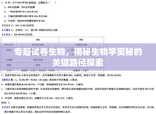 生物学作为一门涵盖生命现象、生物结构、功能及其演化等广泛领域的科学,其深度和广度都令人惊叹,为了更好地理解和掌握生物学的知识,专题试卷生物的出现为学生们提供了深入理解生物学的关键路径,本文将探讨专题试卷生物的重要性,以及如何有效地利用它来深化对生物学的理解。