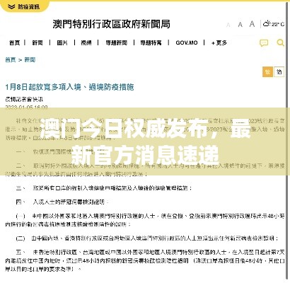 本文将从多个方面介绍澳门官方今日发布的最新消息,包括经济、旅游、文化等方面的发展动态,通过了解这些消息,读者可以更好地了解澳门的最新情况和发展趋势。