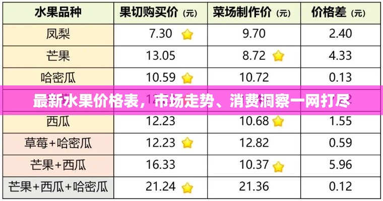 了解最新水果今日价格表,不仅可以帮助我们把握市场走势,还可以引导我们进行更明智的消费选择,在享受美味的同时,让我们共同关注农业发展,为健康、绿色的生活方式贡献力量。