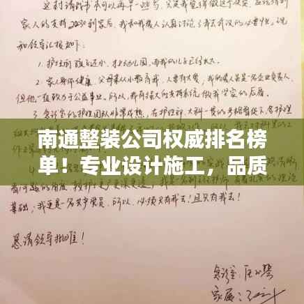 通过了解南通整装公司的排名和相关信息,消费者可以更好地选择适合自己的装修伙伴,确保装修工程的顺利进行和高质量完成,希望本文能为您的装修之旅提供一定的帮助。