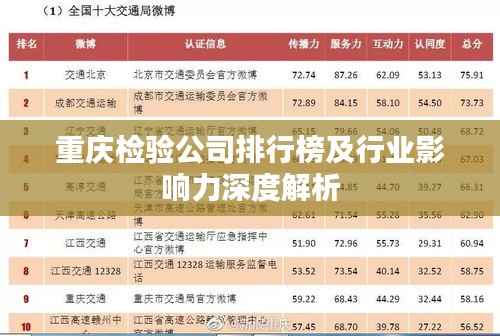 重庆市作为中国的经济重镇,其检验公司在多个领域发挥着重要作用,随着科技的进步和市场的开放,重庆的检验行业也在不断发展壮大,本文将探讨重庆检验公司的排名及其在行业中的影响力。