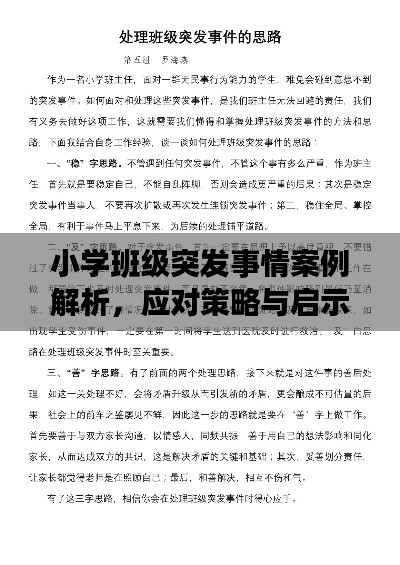 小学生正处于身心快速发展的阶段,活泼好动,好奇心强,班级突发事情时有发生,这些突发事件可能源于学生间的矛盾、意外受伤、自然灾害等方面,本文将通过具体案例,分析小学班级突发事情的处理方法和应对策略。