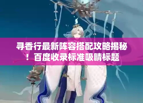 寻香行作为一款策略性游戏,阵容搭配至关重要,在游戏中,玩家需要根据自己的需求和对手的情况来调整阵容,以达到最佳效果,本文将为你介绍最新的阵容搭配攻略,帮助你更好地掌握游戏技巧,提升战斗力。