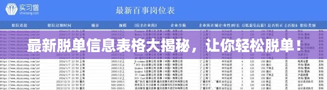 随着社交媒体的普及和人们生活节奏的加快,越来越多的人开始关注自己的情感生活,脱单成为了很多人的心愿,而寻找合适的伴侣则成为了实现这一心愿的关键,为了帮助大家更好地了解最新的脱单信息,我们特别整理了一份今日最新脱单信息表格,以便大家快速浏览和查找心仪的伴侣。