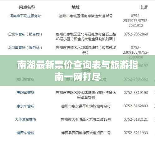 南湖,作为一处著名的旅游景点,吸引了众多游客前来游览,随着季节的变化和节假日的到来,南湖的门票价格也可能会有所调整,本文将为您介绍南湖最新的票价查询表,并提供一份详尽的旅游指南,帮助您更好地规划行程。