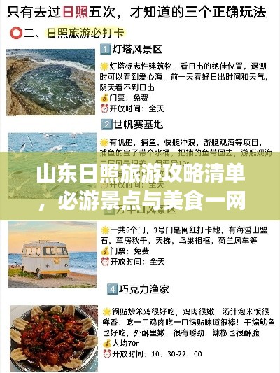山东日照,一座美丽的海滨城市,拥有丰富的旅游资源,本文为您呈现了山东日照最新的旅游清单,希望能帮助您在日照的旅行更加愉快,在游玩的过程中,请注意安全,遵守规定,保护环境,共同营造美好的旅行氛围。