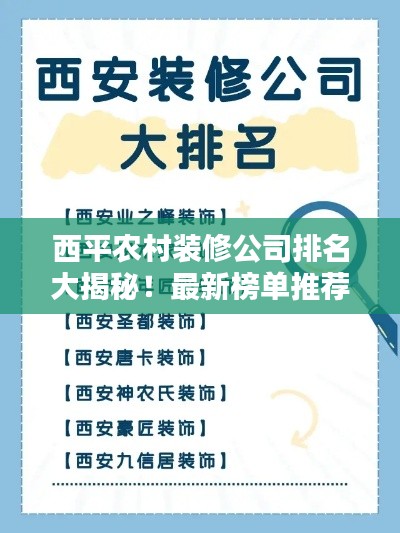 西平农村的装修公司排名介绍旨在为广大农村家庭提供参考,希望广大农村家庭能够通过选择合适的装修公司,让家园变得更加美好。