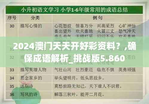 在2024年,澳门特别行政区以其独特的地理与文化背景,持续推动区域经济发展和政策创新。其中,“2024澳门天天开好彩资料?,确保成语解析_挑战版5.860”政策文件备受关注。该政策文件旨在深化澳门博彩业的规范与创新,通过“成语解析_挑战版5.860”作为增强政策深广度与文化维度的独特方法。本文将对2024澳门天天开好彩资料进行详实解读,并剖析“成语解析_挑战版5.860”所带来的影响和意义。
