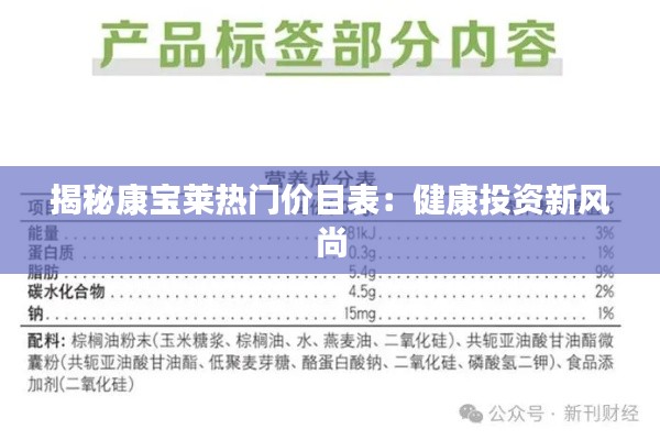 在快节奏的现代生活中,健康成为了人们最为关注的话题之一。随着健康意识的提升,越来越多的人开始寻求科学、有效的营养补充方案。康宝莱,作为全球知名的营养品品牌,凭借其优质的产品和显著的效果,赢得了广大消费者的青睐。今天,我们将带您一探康宝莱热门价目表的究竟,揭秘健康投资的新风尚。
