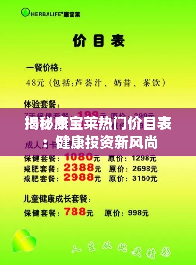揭秘康宝莱热门价目表:健康投资新风尚