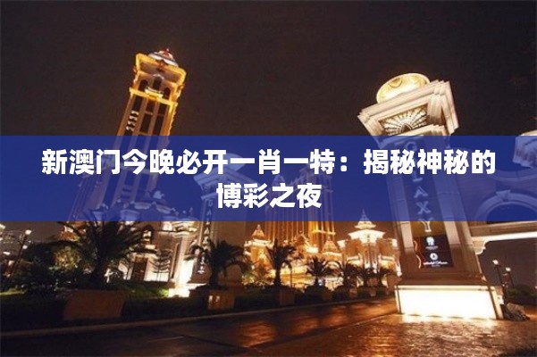 新澳门,这个被视为东方拉斯维加斯的东方明珠,不仅仅局限于其独特的地理位置和地理位置。更吸引人的地方在于它那迷离般的博彩业,似真似幻的“一肖一特”更是令人们啧啧称奇、意犹未尽。而这个神秘的博彩夜晚,在新澳门这个充满哲学奇幻的大舞台,正是今晚的秘密,激发了世界的目光。本文旨在揭秘新澳门今晚必开一肖一特,带您走进这个神秘的博彩之夜晚。