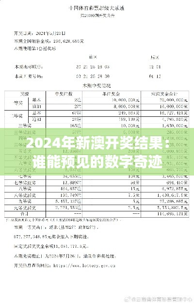 在澳门这个充满活力和多元文化的特区,彩票业一直扮演着重要的角色,不仅为当地居民提供了娱乐,也为经济发展注入了新的活力。2024年,新澳彩票以其公正、透明的开奖方式,吸引了众多彩票爱好者的目光。本文旨在对2024年澳门新澳彩票开奖结果进行全面分析,探讨谁能预见这场数字奇迹的诞生。