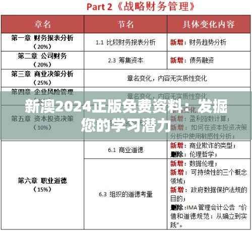 在信息爆炸的时代,个人的学习潜力往往被如何筛选和吸收有用信息的困扰所压制。新澳2024正版免费资料计划的目的之一,便是通过提供精心挑选的学习材料,帮助居民更有效地发掘和提升自己的学习潜力。