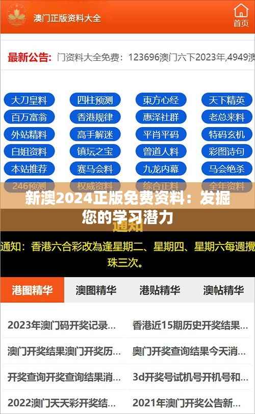 在澳门这座充满活力的城市中,教育始终被视为推动社会进步与个人发展的关键因素。随着科技的发展和全球一体化的进程,教育资源的获取和共享变得尤为重要。澳门特别行政区致力于支持和鼓励居民解锁他们的学习潜力,因此,新澳政策办公室推出了"新澳2024正版免费资料:发掘您的学习潜力"计划。通过这个项目,我们提供一系列正版免费的资料,旨在帮助澳门居民提升知识水平、掌握前沿技能、并培养终身学习的习惯。