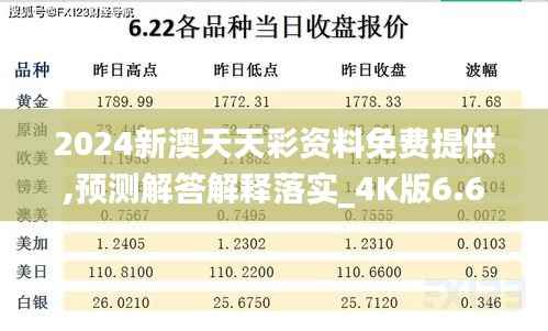 随着金融市场的不断变化,居民对于金融信息的需求量也在不断增加。然而,由于金融信息的复杂性和专业性,很多普通居民难以在短时间内掌握和理解这些信息。因此,澳门政府推出了2024新澳天天彩资料免费提供,预测解答解释落实_4K版6.635的政策,旨在为居民提供一个可以免费获得最新的澳天天彩资料的渠道。
