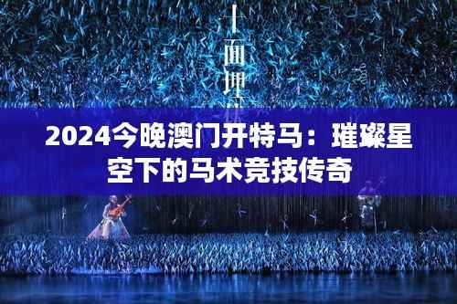 澳门,这座闪耀着历史与现代交融光辉的城市,即将揭开新的篇章。2024年的澳门,以其璀璨星空下的独特魅力,迎来了一项全新的体育盛事——"2024今晚澳门开特马:璀璨星空下的马术竞技传奇"。这不仅是一场展现骑术与马力的盛事,更是一次深入感受澳门文化的绝佳机会。本文将一一展开,带你一起发现这场马术盛宴背后的精彩故事和深远意义。
