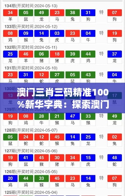 澳门三肖三码精准100%新华字典不仅是一本重量级的工具书,更是澳门地区独具特色和价值的文化象征。本文旨在通过深度解读澳门三肖三码精准100%新华字典的内容和特点,帮助读者更好地理解其在澳门文化和社会发展中的重要性。
