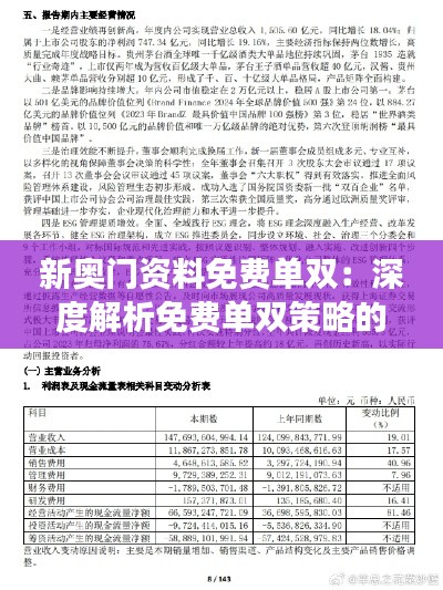 总的来看,“新奥门资料免费单双”策略是一个复杂的游戏策略,它同时包含技巧、心理、财务和管理方面的因素。尽管这一策略在过去被某些玩家证明有效,但它的成功并不是一成不变的,并且具有很大的不确定性。因此,深入理解并应用这些策略需要玩家具备较强的专业知识和经验。本文希望提供一些有益的见解,以帮助玩家更全面地理解这一策略,并在游戏中作出更明智的决策。