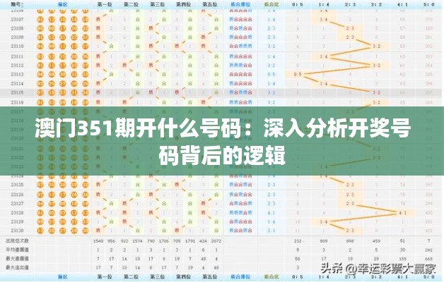 澳门“351期”开奖号码背后的逻辑