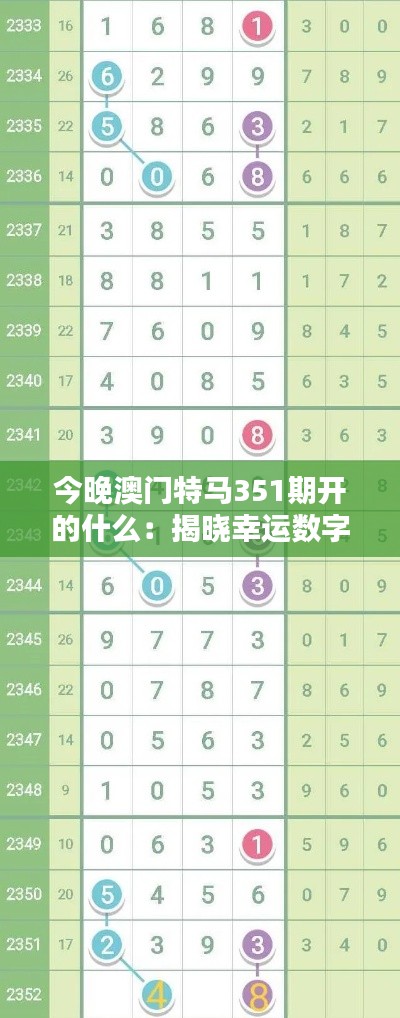 随着澳门特马的不断发展和变化,“今晚澳门特马351期开的什么”已经不再是一个简单的问题,它所代表的是一种潜力、一种可能。澳门特马将继续前进,开创新的篇章,未来,将有更多的幸运等着我们去挖掘,去体验。