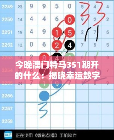 您好,尊敬的澳门市民们和全球彩票爱好者们。在这里,我们满怀期待地宣布,今天晚上,澳门特马351期已进入紧张刺激的开奖时刻。数字的魅力在于它的神秘和不可预测性,每个人都对她充满了无限的好奇和幻想,而今晚——就是揭开这层神秘面纱的时候。无数的期待与激动交织在每个人心中,等待幸运之神的降临。