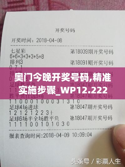 《奥门今晚开奖号码,精准实施步骤_WP12.222》文件旨在规范澳门博彩业的开奖流程,保护彩民权益,维护博彩活动的公信力。该文件详细阐述了开奖号码的生成、核查和公布等关键环节的精准步骤,确保每期开奖结果的准确性和权威性。