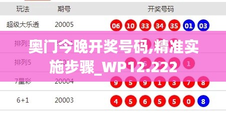 随着澳门博彩业的迅速发展,公众对于了解开奖信息的需求日益增加,确保开奖过程的透明公正是博彩行业健康发展的关键。本文将介绍《奥门今晚开奖号码,精准实施步骤_WP12.222》文件的相关内容,为公众提供精准的开奖信息和实施步骤。