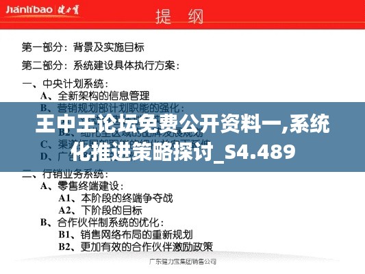 “王中王论坛免费公开资料一,系统化推进策略探讨_S4.489”的核心内容分为以下几个方面:首先是资料的整合,其次是策略的制定,再次是执行的监控,最后是效果的评估。