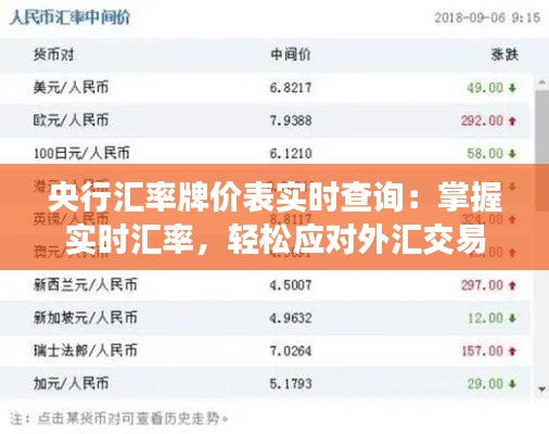 标题:央行汇率牌价表实时查询:掌握实时汇率,轻松应对外汇交易