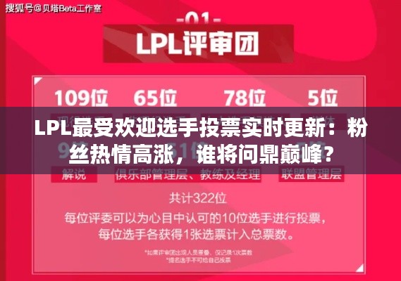 标题:LPL最受欢迎选手投票实时更新:粉丝热情高涨,谁将问鼎巅峰?