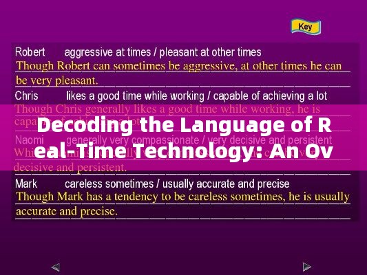 <p>Real-time technology refers to the processing and transmission of data in a time frame that is critical to the application's operation. It is essential in fields such as telecommunications, financial services, gaming, and industrial automation, where immediate data processing and response are crucial. To navigate this fast-paced domain, professionals often use a set of specialized English abbreviations to streamline communication and understanding.</p>