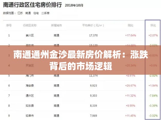 那么,南通通州金沙房价的涨跌背后究竟隐藏着怎样的市场逻辑呢?以下将从几个方面进行分析: